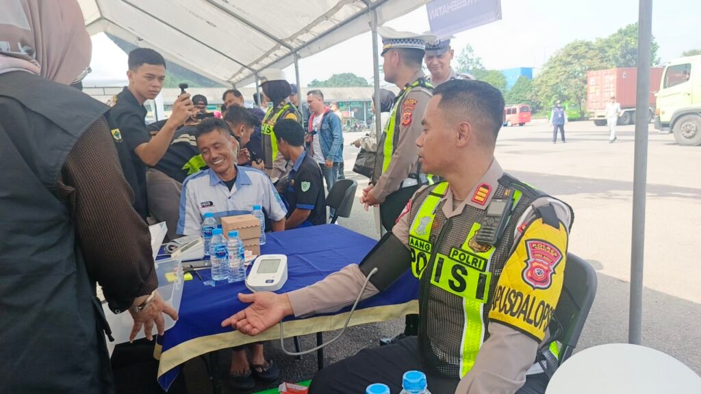 Pengemudi Bus sedang diperiksa Kesehatanya bersama Kasatlantas Polres Cianjur, selasa.(10/2/26)